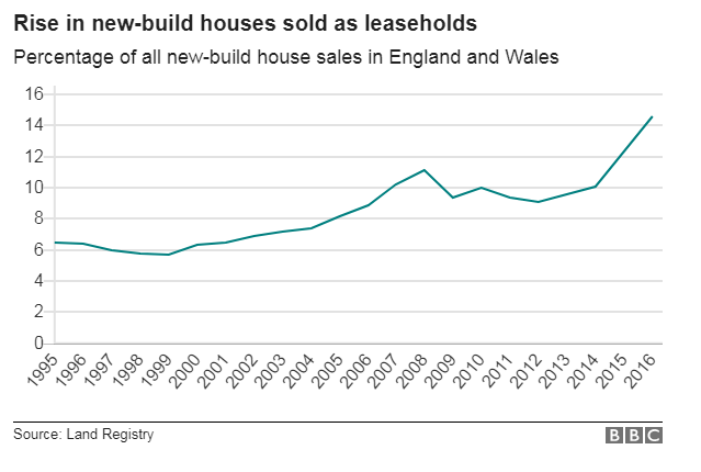 But the trend for new-build houses being sold as leasehold has accelerated in recent years.